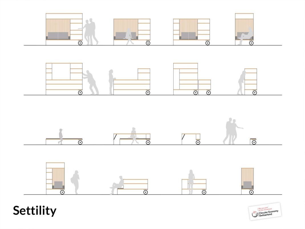 Gestalten Sie mit Settility Orte, die sich flexibel nutzen lassen. Wenn sich ein Treffpunkt Ihres Unternehmens oder Ihrer Institution im Handumdrehen in eine Arbeitszone, einen Rückzugsraum, eine Verkaufsfläche, eine Workshop-Location, eine Lobby oder ein Pop-up-Restaurant verwandeln soll, profitieren Sie von der Einrichtungslösung Settility.